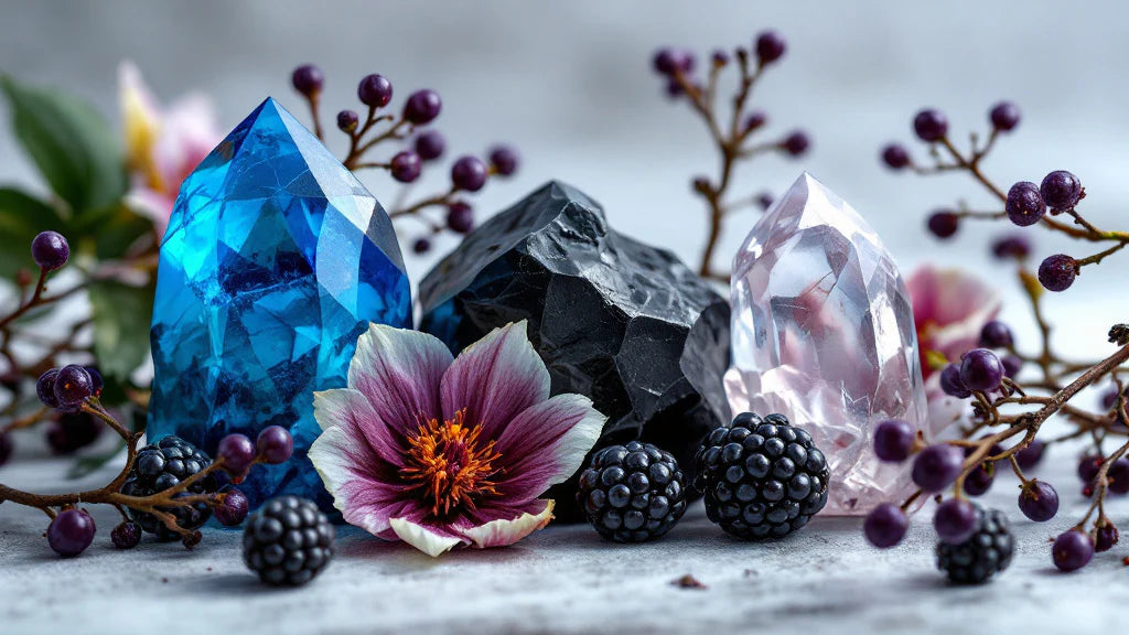 Eternal Blooms Crystal Candle with Black Obsidian, Lapis Lazuli, and Crystal Quartz | Coconut-Soy Wax Candle, 9oz