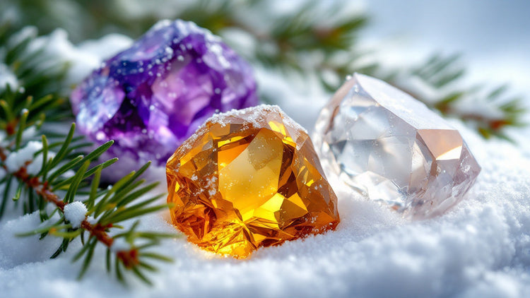 Arctic Winds Crystal Candle with Citrine, Amethyst, and Crystal Quartz | Coconut-Soy Wax Candle, 9oz