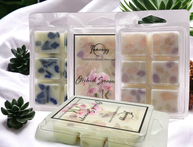Indulge in the ultimate sensory experience with our Crystal-Infused Wax Melts, meticulously crafted from a long-lasting premium coconut-soy wax blend and infused with all-natural essential oil fragrances. Immerse your space in luxurious scents while embracing the energy-enhancing qualities of carefully selected crystals. Elevate your atmosphere and awaken your senses with this exquisite fusion of premium ingredients designed to transcend the ordinary.