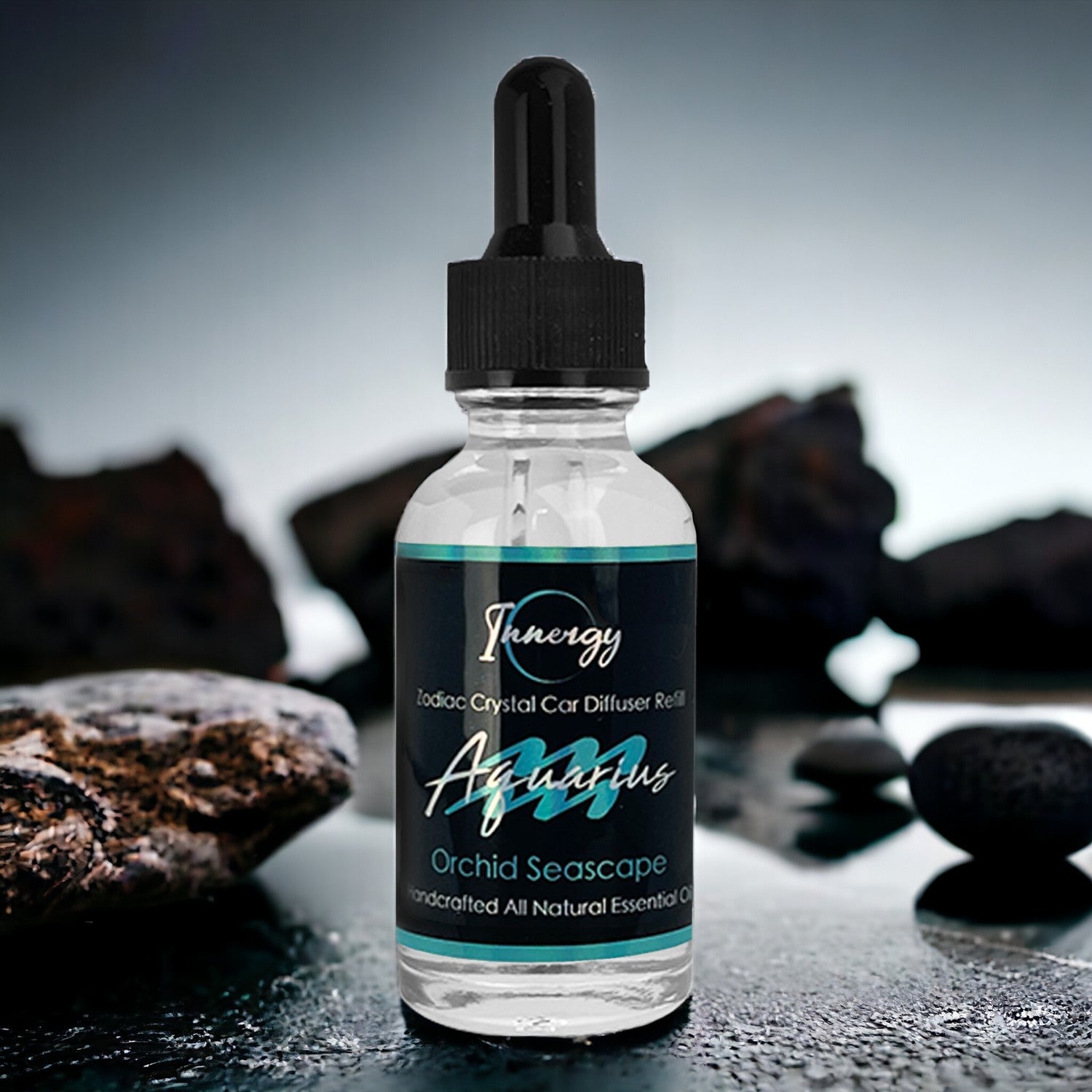 Elevate your daily drive with the celestial energy of our Aquarius Zodiac Crystal-Enhanced Car Diffuser. Immerse yourself in the captivating scent of Orchid Seascape, with notes of sea salt, lush green leaves, orchid petals, and freesia flowers, a fragrance designed to complement the unique spirit of Aquarius.