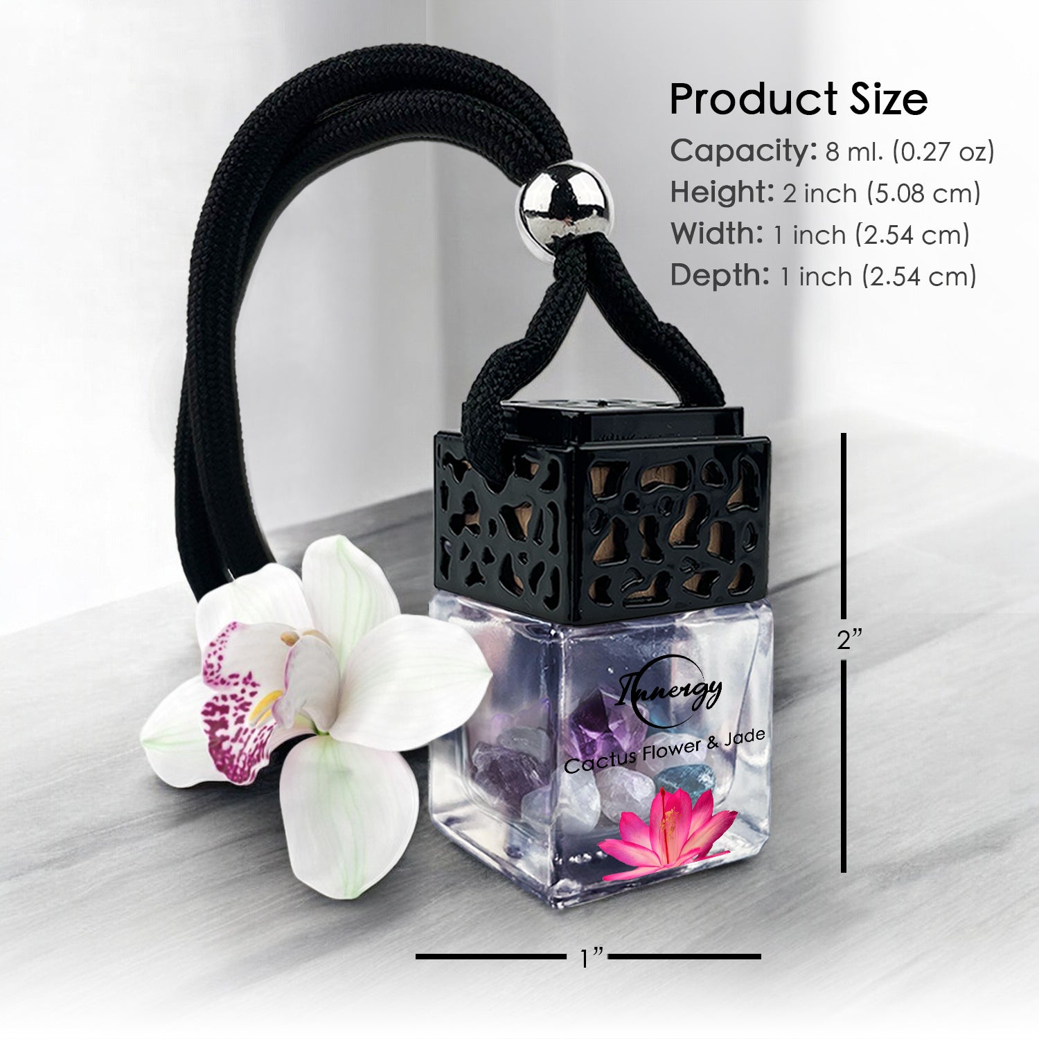 Embark on a sensory journey with the soothing essence of our Crystal-Enhanced Car Diffuser, featuring the delicate scent of Cactus Flower and Jade.