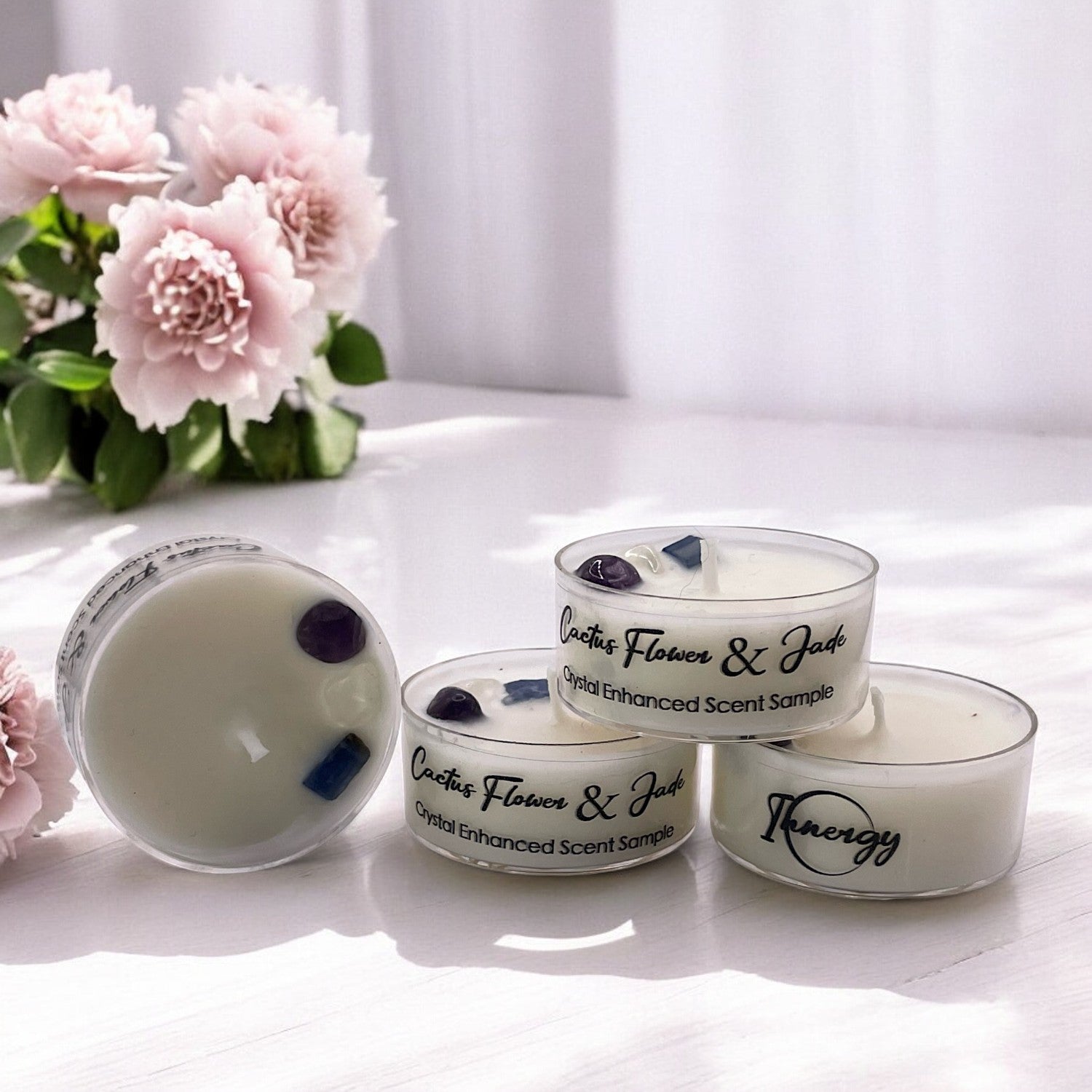Cactus Flower and Jade, Premium Coconut-Soy Wax Tea Light Crystal Candle, 1oz