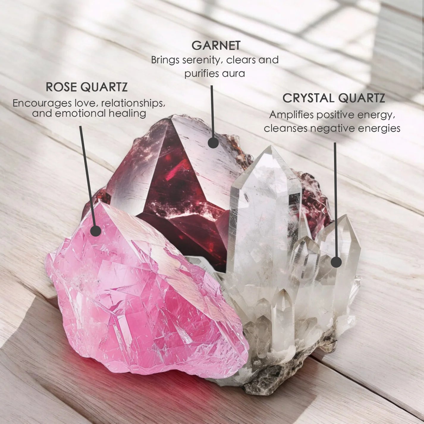 Garnet: A stone of grounding and stability, Garnet clears and purifies the aura, fostering a harmonious and peaceful environment.