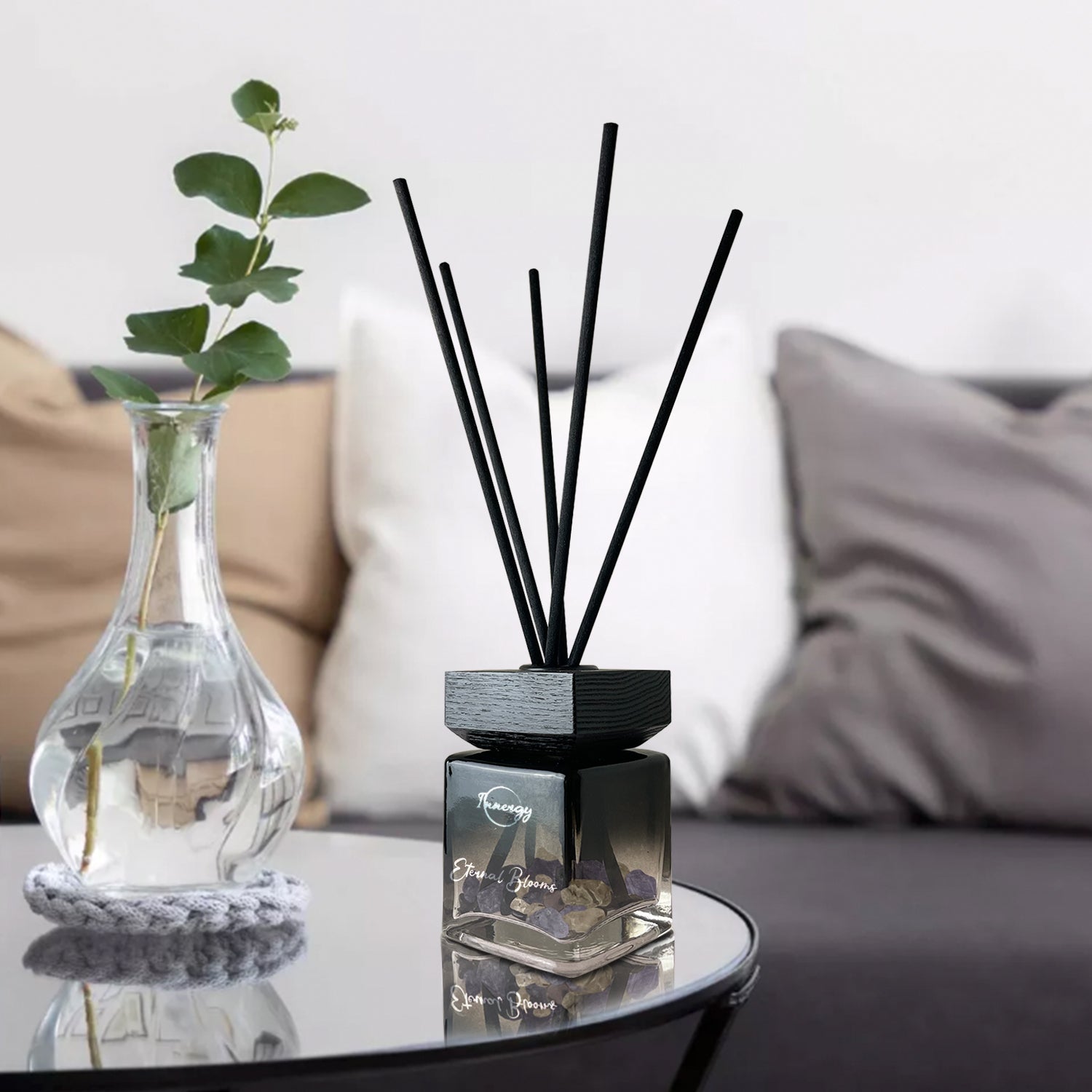 Embark on an olfactory adventure with our Crystal-Enhanced Reed Diffuser, designed to infuse your space with the invigorating scent of Eternal Blooms. Experience notes of gardenia, lemon peel, tuberose, and jasmine, as this captivating fragrance brings a sense of positivity and vibrancy to your surroundings.