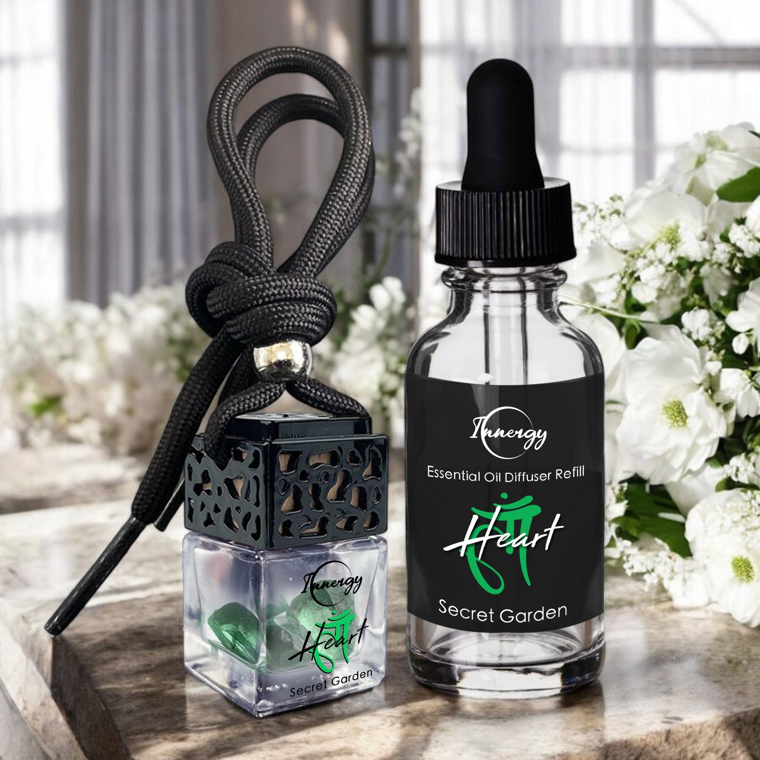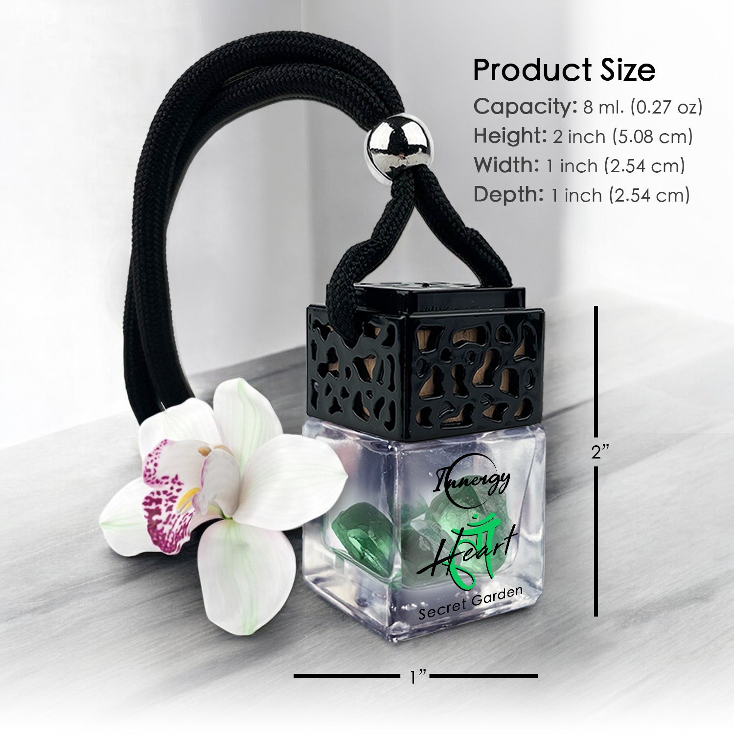 Indulge your senses with our Crystal-Enhanced Car Diffuser, featuring the enchanting "Secret Garden" scent—a seductive blend of aromatic herbs, warm amber, and delicate florals. This captivating aroma unfolds with gentle notes of bergamot and geranium, gracefully fading into a bouquet of roses and violets, culminating in a woodsy, rich base of saffron.