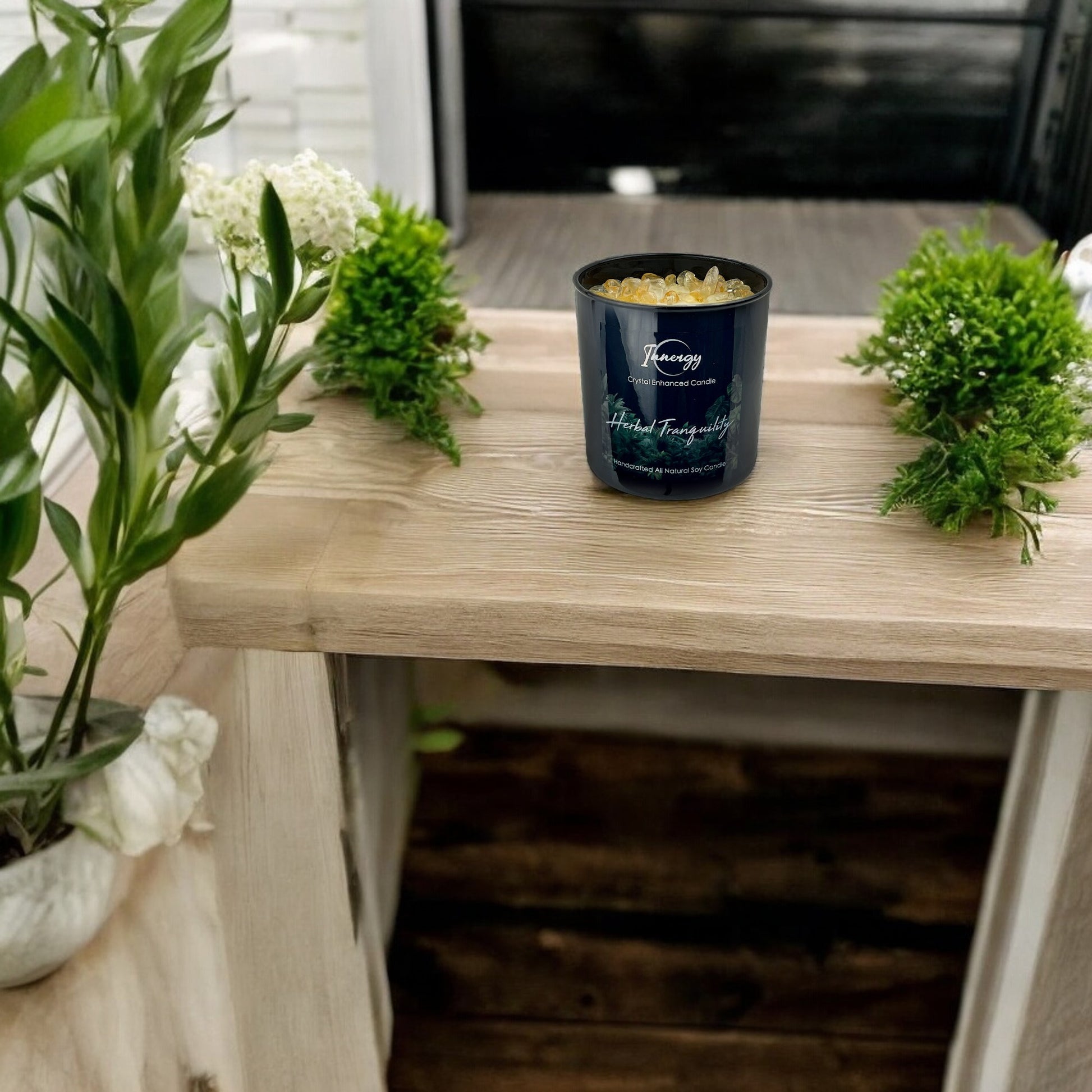 Herbal Tranquility Crystal Candle with Citrine | Coconut-Soy Wax Candle, 9oz