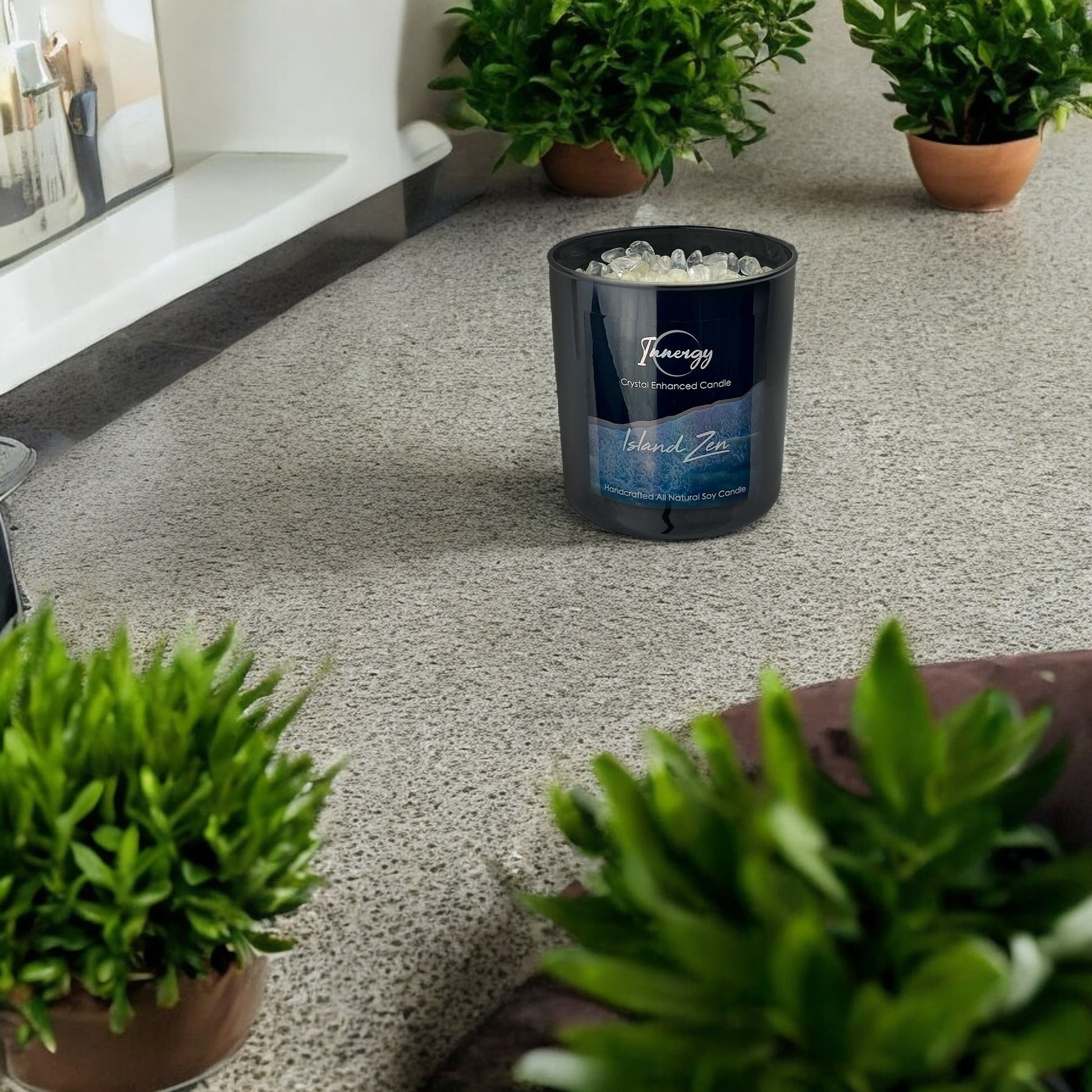 Embrace the serenity of Island Zen, a harmonious blend of tropical scents and crystal energy that soothes the soul and uplifts the spirit.