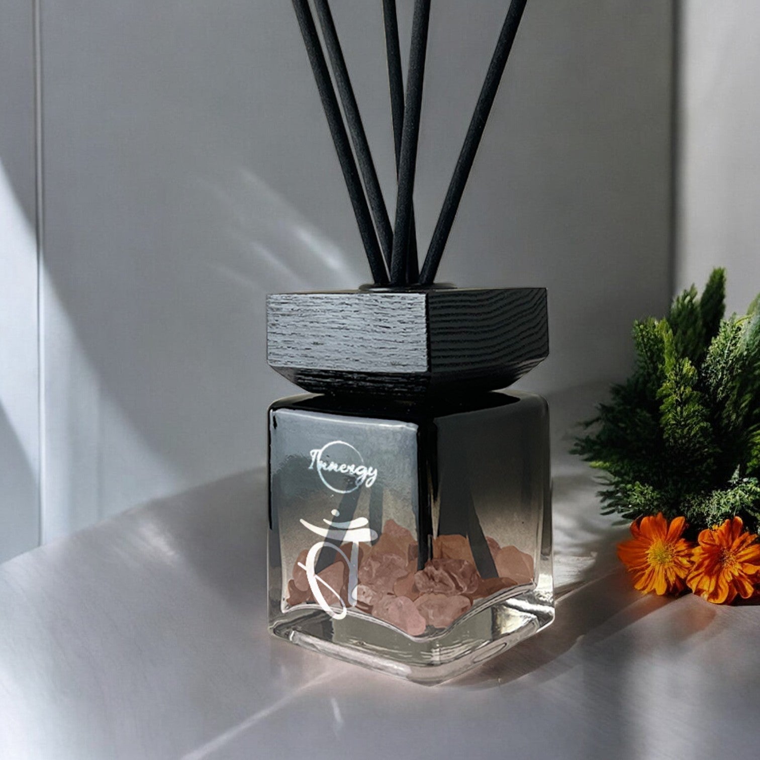 Let the gentle vibrations of Peach Aventurine infuse your space with optimism and balance, making it the perfect complement to this energizing fragrance.