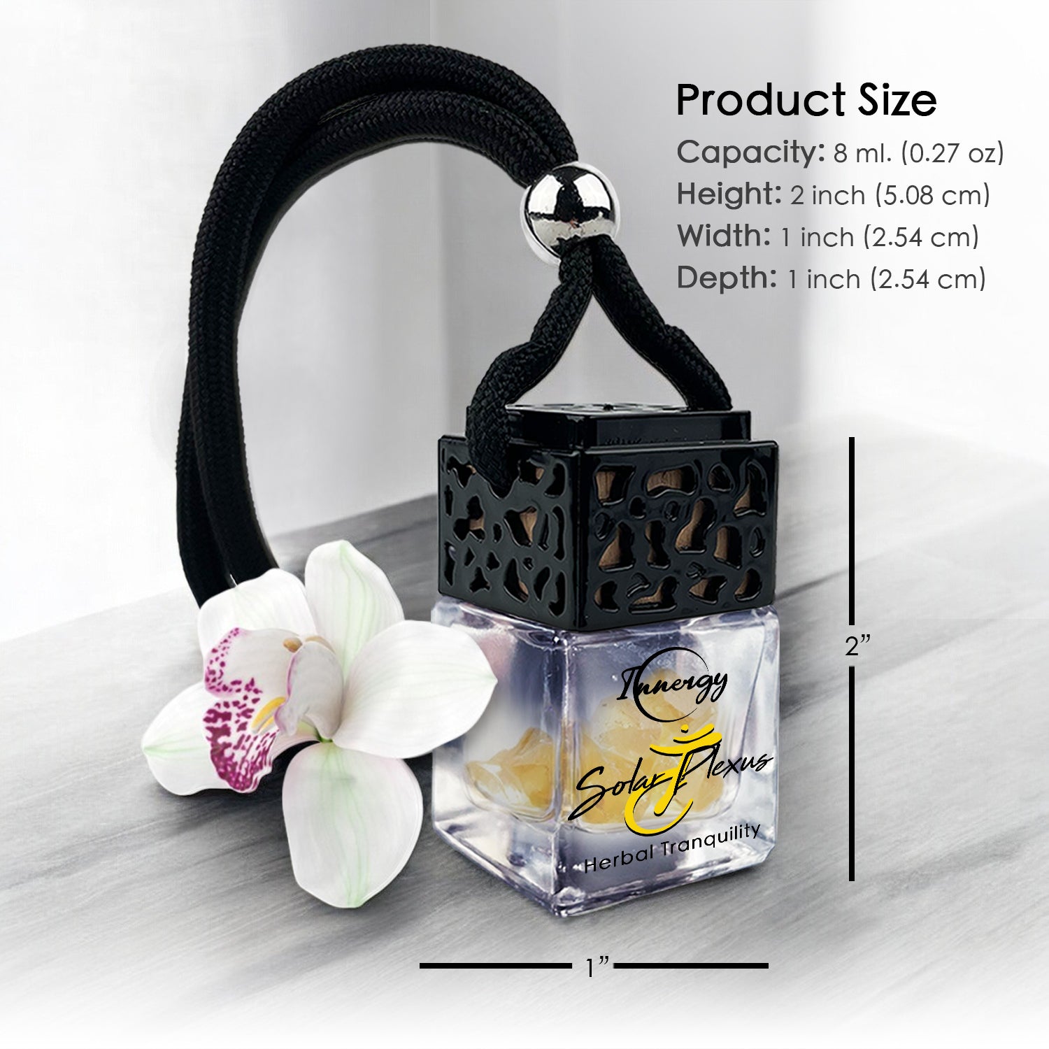 Elevate your driving experience with our Solar Plexus Chakra Crystal-Enhanced Car Diffuser, infused with an invigorating Herbal Tranquility scent. This delightful aroma, enriched with fir needle, eucalyptus, and cedar leaf essential oils, encapsulates the essence of botanical beauty and tranquility.